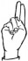 На ћирилици написано НЕБОЈША ОГЊЕВИЋ састоји се из 14 слова [?]. Исписано ћириличном једноручном азбуком за глувонеме: